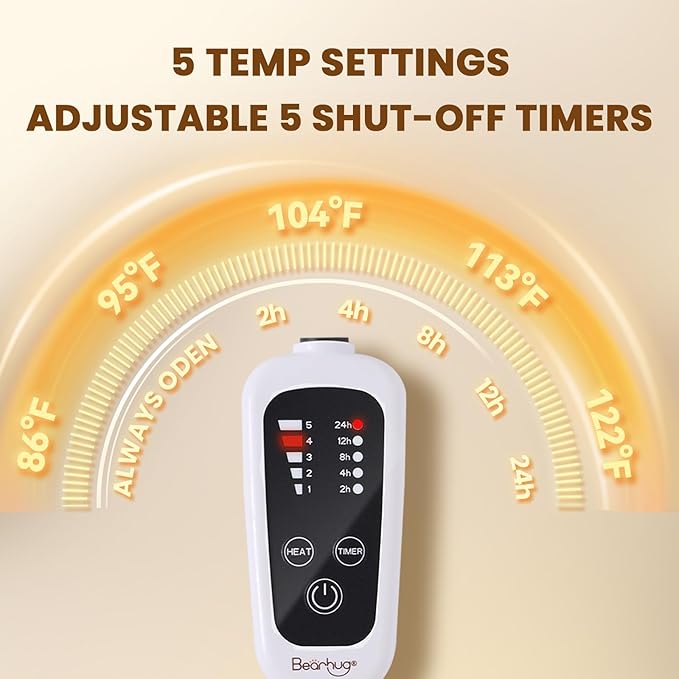 - 【Smart Heating for Your Pet】With five adjustable heating settings and an automatic shut-off timer, our heating pad is smarter than ever. It can meet the different temperature needs of various pets. Whether your pet is a cold-natured kitty or a warm-loving pup, this pad has got you covered.