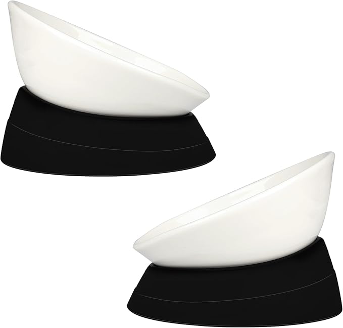 Bulldog Bowl Anti-Slip Dog Cat Dish Detachable Ceramic Pet Sterile Tilted Pet Feeder Slope Base (White Ceramic Bowl, 2 Cup)
