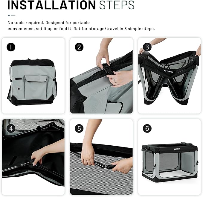 - Stable Structure and High-quality Materials: Made with high-strength iron pipes and high-quality 600D Oxford fabric, this collapsible dog crate is both lightweight and sturdy. The Oxford fabric is long-lasting, tear-tough, and convenient to clean, ensuring the crate's long-term durability.