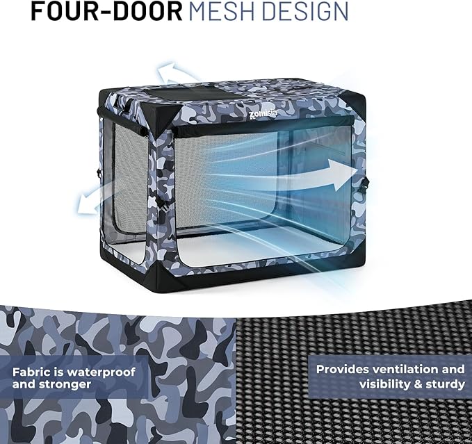 Collapsible Dog Crate for Large Dogs - 42 Inch Dog Travel Crate Portable with Breathable Mesh Windows, Soft Sided Dog Kennel Foldable for Indoor and Outdoor, Camo