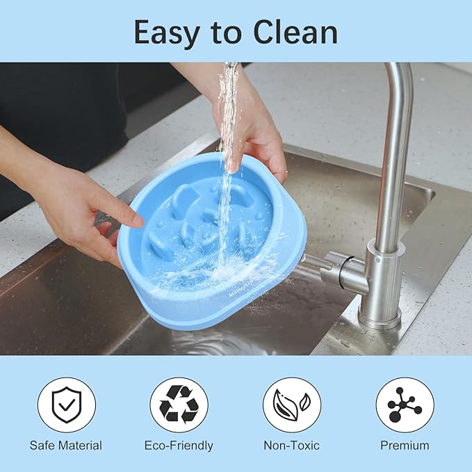 - Easy To Clean: Our slow feed dog bowls for small dogs, slow feeder cat bowl dry food and dog bowls that slow down eating are top-rack dishwasher safe, or another choice for you is to simply spray with warm, soapy water and rinse! The less workload you have on the puppy food bowl, the more playtime you can spend with your puppy! Slow dog feeder bowl and slow feeder dog bowls small breed is an interactive dog feeder for small dogs for your pets, as well as a good helper to ease your workload