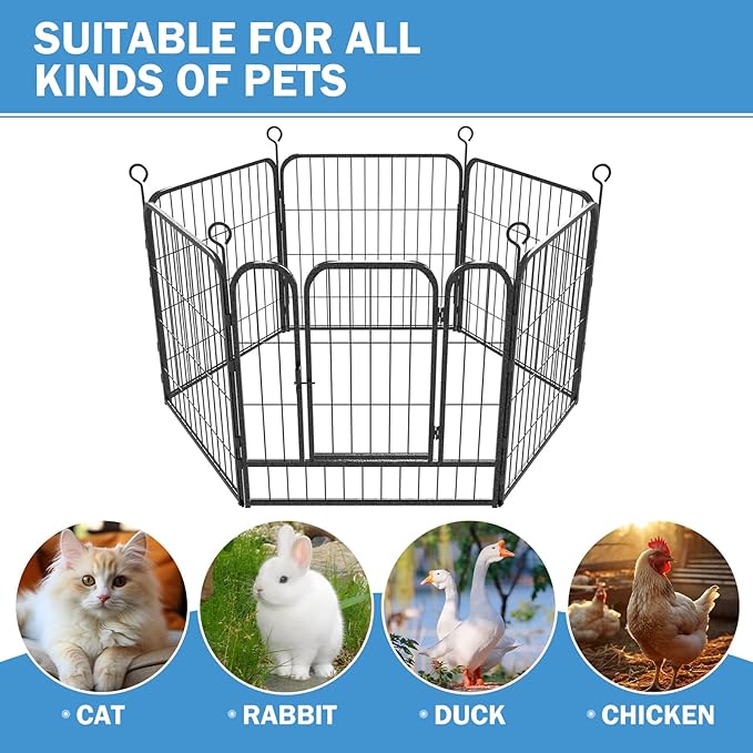 Dog Playpen 6 Panels 24'' Height Heavy Duty Dog Fence with Doors Outdoor Exercise Dog Fence for Large/Medium/Small Dogs Pets Playpen for RV, Camper, Yard