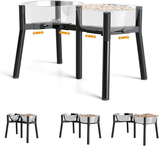 - 【 WIDTH ADJUSTABLE 7-10.6"】 – Easily adjust the TIDANT raised dog bowl stand to fit bowls of different sizes. Simply place the bowl on the adjustable track, determine the proper width, and tighten the bolt—no tools needed.