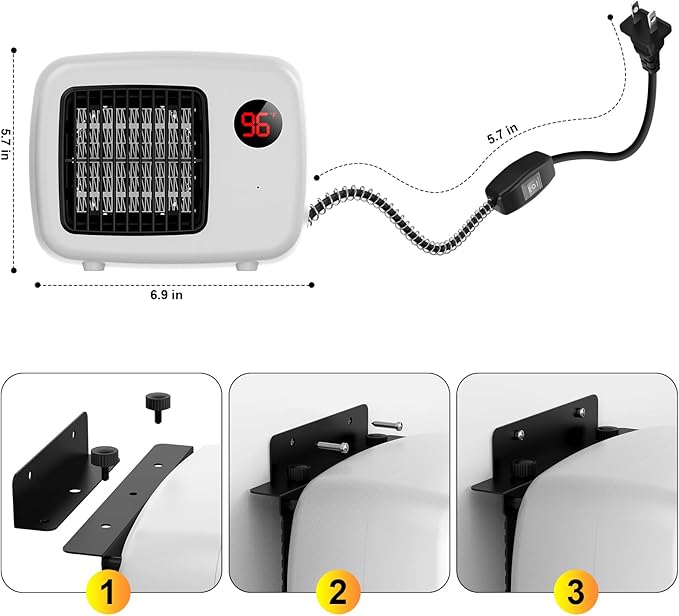 - FAST HEATING PET OUTDOOR HEATER:Upgraded pet house heater with adjustable temperature 300W (95°F) and 600W (100°F) two settings, effectively and quickly heats up to 150 sq. ft. in just 3 seconds.The dog house heater measures only 6.9 x 5.2 x 5.7 inches, protects and ensures your pets stay warm even in the coldest weather