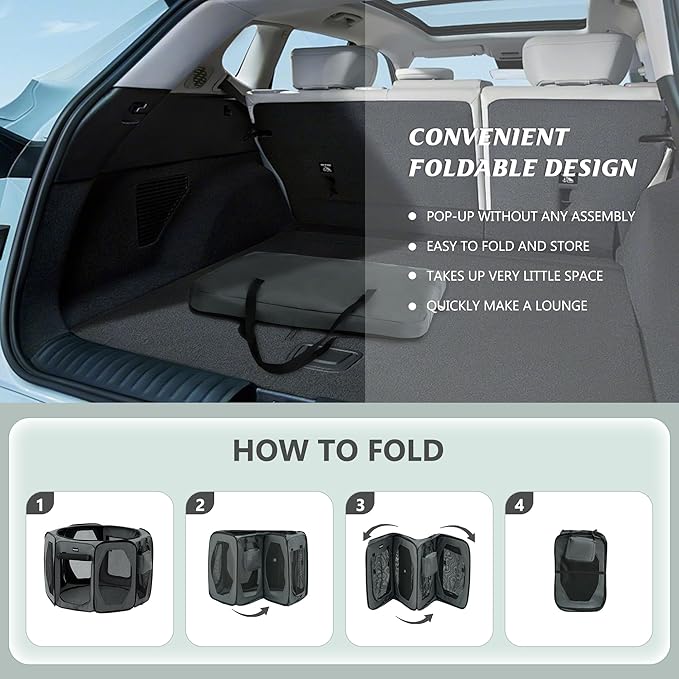 - 【Portable Design】This high quality dog playpen includes a handy handbag for easy carrying. It sets up in seconds and folds flat for travel or camping. With no assembly needed, in garden or any room of your house, this makes it easy for your furry friends to come and go freely, and allows you to interact with your pet without having to disassemble the pet playpen.