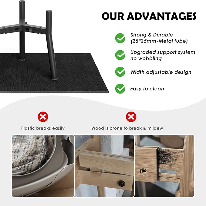 - 【No Messy Floors & Stable】- TIDANT dog bowl holder comes with a spill-proof mat (16x24 inches), which is great for avoiding water and food spills and keeping the floor dry.The legs of the dog food stand are designed to extend outward at a slanted angle and are fitted with non-slip feet pads on the bottom to keep the stand firmly in place and prevent your dog from knocking it over while eating.
