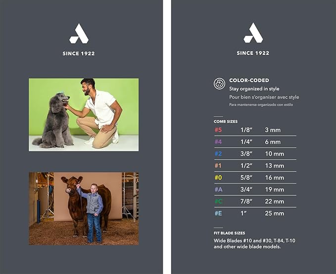 - Achieve clean finishes with ultra-durable, stainless-steel combs that move through the coat more smoothly than plastic attachment combs