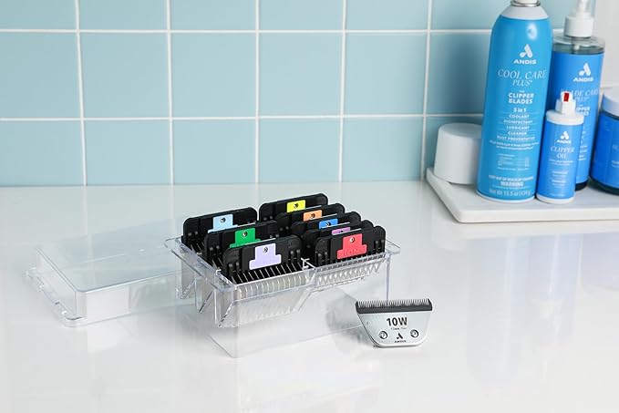 Andis 561475 Premium Clip Animal Comb Set – Built with Plastic, Includes 8 Color Coded Combs of Different Sizes, Attach Comb, All Coat Types, Multicolor