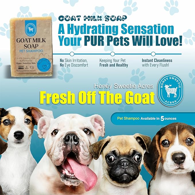 Honey Sweetie Acres 1 Pack All-Natural Pet Shampoo Bar with Fresh Goat Milk - Moisturizing Relief for Dry, Itchy Skin - Leaves A Fresh, Clean Scent - Eliminate Dirty Pet Odor, 5 oz Bar (1 Count)