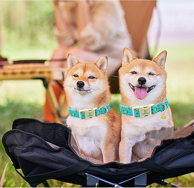 Lionheart glory Dog Collar, Bees Blue Dogs Collar Adjustable Soft Comfortable Collars for Large Dogs Girl or Boy Pet Gift Cute Spring Summer Collar