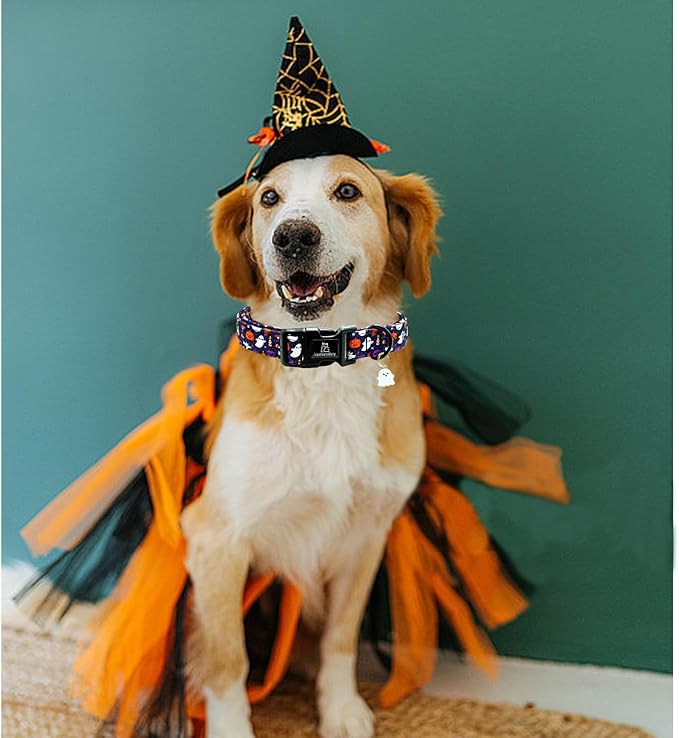 Lionheart glory Dog Collars Fall Halloween Pumpkin Collar Dog Heavy Comfortable Adjustable Dog Collar for Large Collar Dogs Girls or Boys Dog Collar Cute Pet Gift