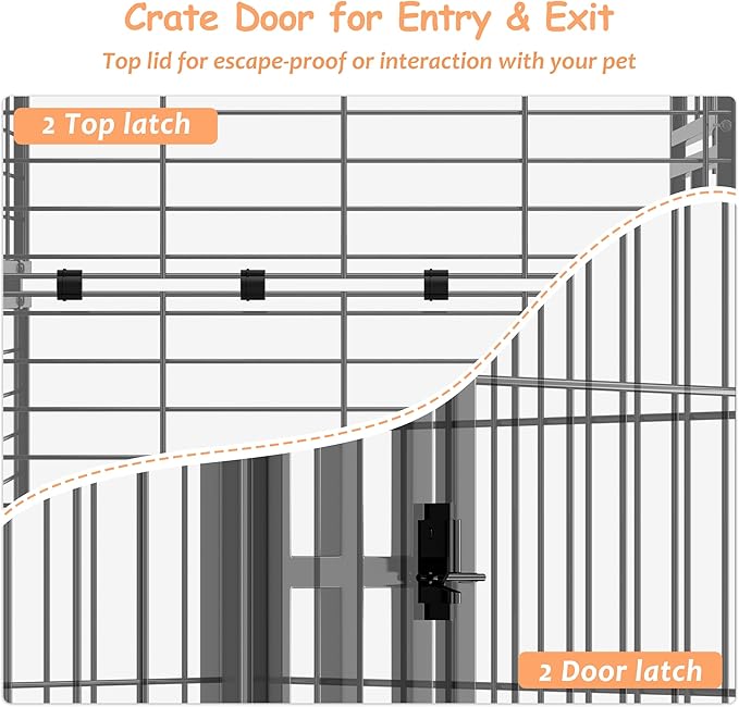 - [Heavy-Duty & Safe] The dog crate is crafted with a heavy-duty frame and featuring 4 secure locks, this dog crate offers a sturdy, rust-resistant metal wire construction with smooth, edge-free surfaces. It’s a safe, stable home for your furry friend.