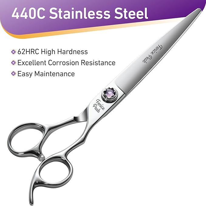 - High-Quality Material:Made of the high-quality 440C stainless steel, Our dog grooming scissor ensures a clean, crisp and smooth cut. Wasy to cut the thickest fur and toughest tangles.