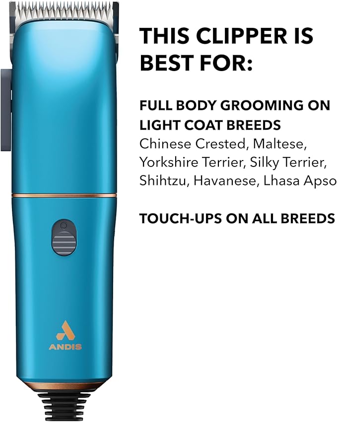 Andis Easy Clip Adjustable Blade Corded Dog Clipper, 11 Piece Kit, Lightweight, Powerful Motor, Blue, 560814