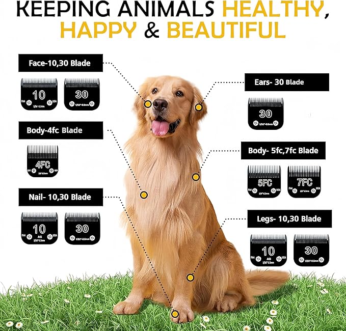 - 【Smooth & Precise Cuts】 – Delivers a consistent cut length—perfect for grooming various pet coat types, including dogs, cats, and other small animals. (Specific cut length will vary by blade size: 4F - ~3/8", 5F - ~1/4", 7F - ~1/8", #10 - ~1/16", #30 - ~1/50")