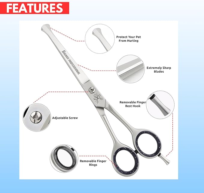 - 🐾 Pet Safe Design: Ball-tipped ends hair cutting scissors are perfect & safe pet gromming scissors to trimming around ears, nose, face, and paws.