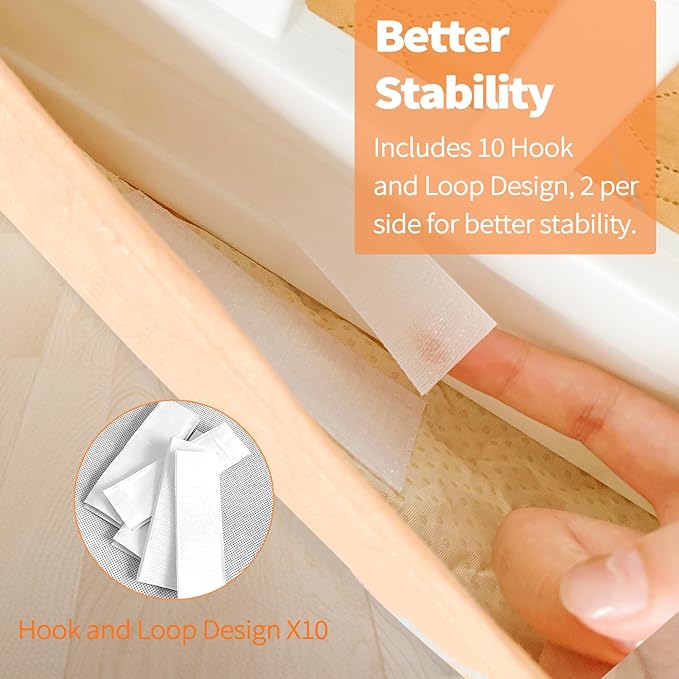 - Hoop-and-Loop Design: Each side of the 36-inch bottom mat features two stitched velcro strips for secure attachment. We also provide an extra set of 5 velcro pairs for added stability. This design fits most 36-inch plastic playpens available on the market.