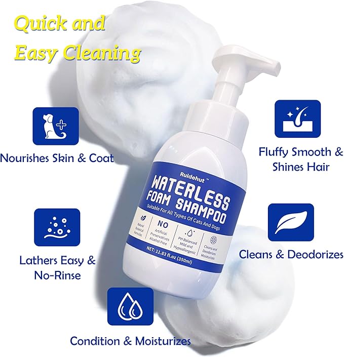 - CONVENIENT TO USE: No need to wash, cleanliness is easier. Simply spray onto the pet's fur, rub and comb, then towel off to quickly remove stains and odors, suitable for busy pet owners.