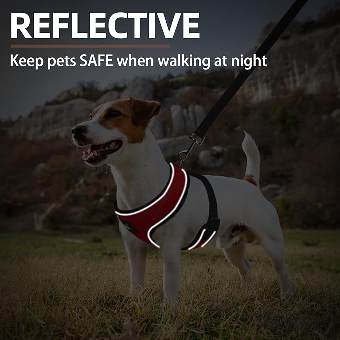 - QUALITY MATERIALS: Made of premium polyester materials, it's adopted with an air-mesh design, so it's very lightweight and breathable. The soft edge keeps the dog always comfortable, it's no pull and no choke. And sturdy webbings make sure the harness can be used for a long period. The metal D-ring will connect to the matching leash to keep the control by you