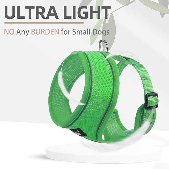 PUPTECK Soft Mesh Dog Harness and Leash Set Pet Puppy Cat Comfort Padded Vest No Pull Harnesses, Solid Green, S