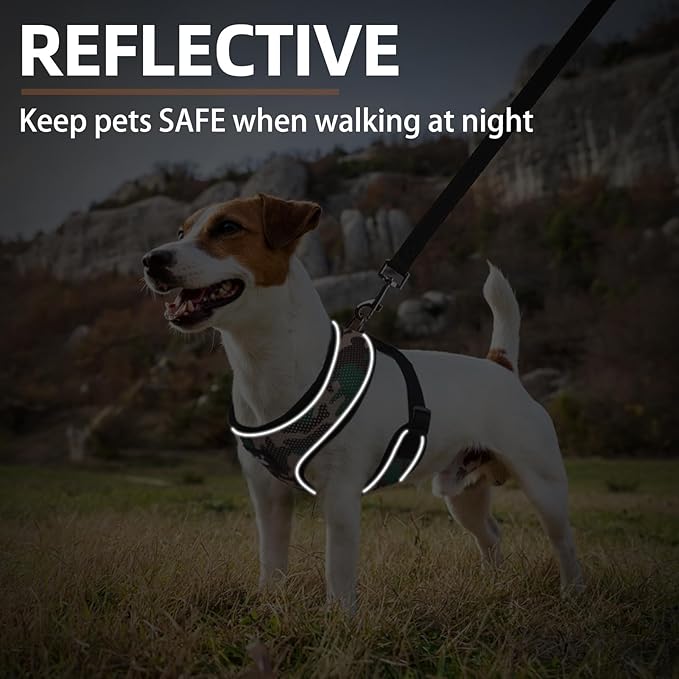 PUPTECK Soft Mesh Dog Harness and Leash Set Pet Puppy Cat Comfort Padded Vest No Pull Harnesses, Camouflage, S