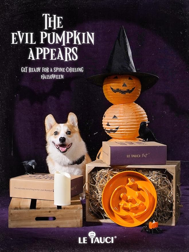 LE TAUCI Dog Bowls Slow Feeder Ceramic, 1.5 Cup Slow Feeding Bowl for Medium Breed Puppies & Fast Eaters, Puzzle Dog Food Bowl, Pumpkin Orange