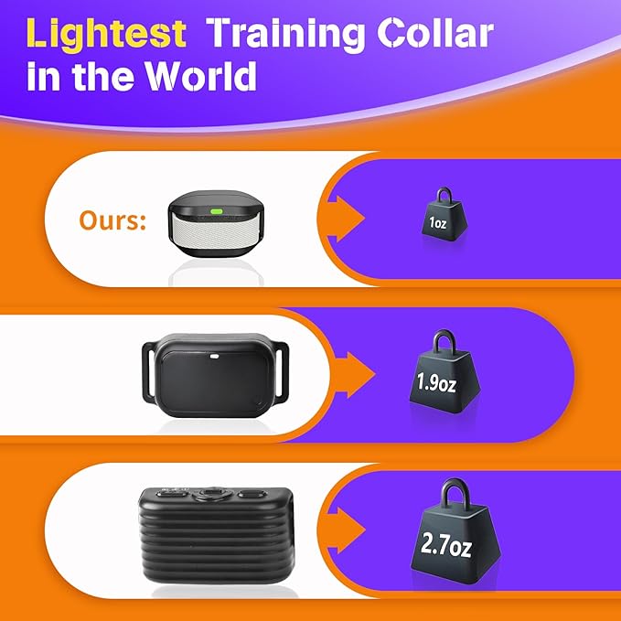 - 【Smallest and Lightest】: This dog training collar is the smallest and lightest on the market, with a size of only 1.6*1.2 in and a weight of just 1oz, making it ideal for small and medium-sized pet dog/cat 5-15 lbs.