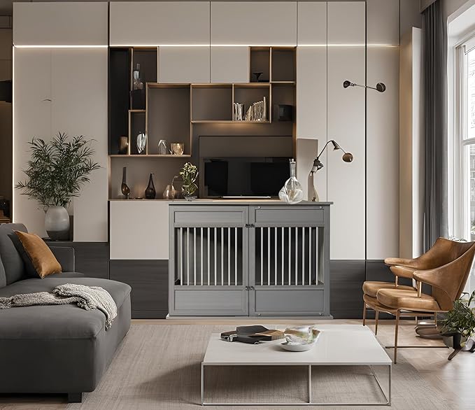 - [Durability & Style] Crafted from ECOFLEX, a robust wood-plastic composite, this large dog crate doubles as an elegant end table; blending seamlessly with your living room, bedroom, or family room decor