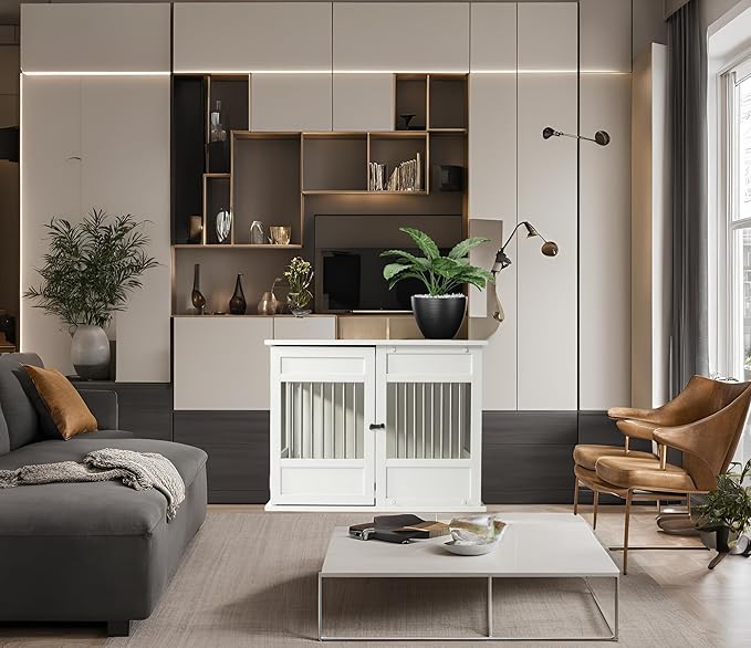 - [Durability & Style] Crafted from ECOFLEX, a robust wood-plastic composite, this large dog crate doubles as an elegant end table; blending seamlessly with your living room, bedroom, or family room decor