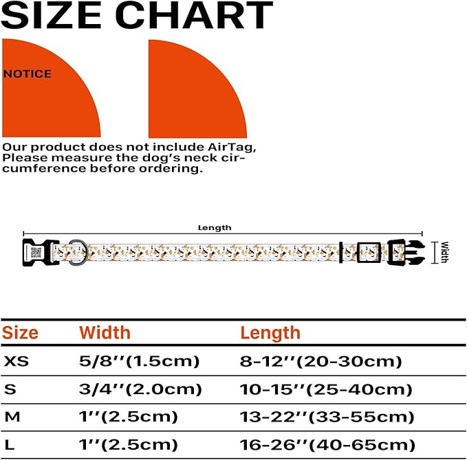 - Adjustable Wide Range of Sizes: XS: 5/8"W, Length 8"-12"; S: 3/4"W, Length 10"-15"; M: 1"W, Length 13"-22"; L: 1"W, Length 16"-26", Please measure the circumference of your dog's neck before purchasing