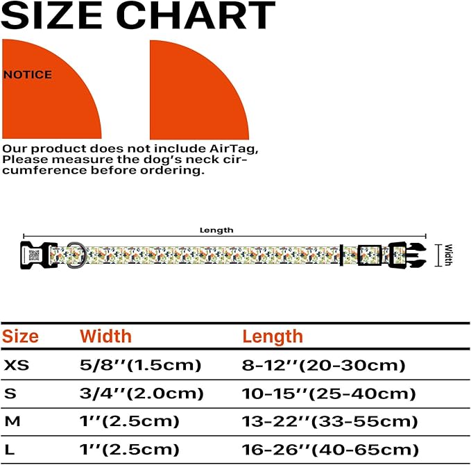 - Adjustable Wide Range of Sizes: XS: 5/8"W, Length 8"-12"; S: 3/4"W, Length 10"-15"; M: 1"W, Length 13"-22"; L: 1"W, Length 16"-30", Please measure the circumference of your dog's neck before purchasing