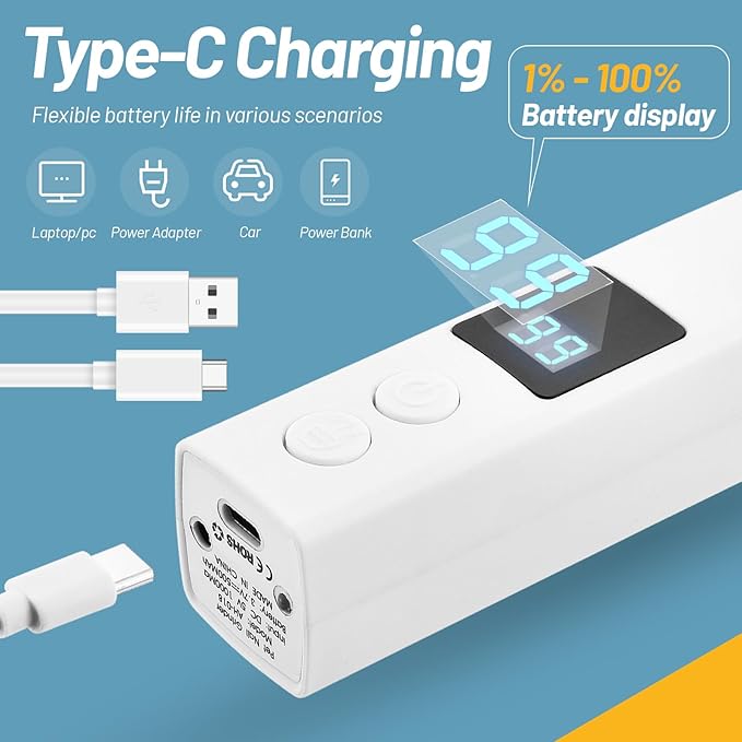 - 【Rechargeable Design】: Pet nail grinder for dogs adopts a rechargeable design. It can be used continuously for 2 hours after charging for 3 hours, so you can trim your pet's nails anytime, anywhere. The clear power indicator screen can accurately display the real-time power level from 1% to 100%, so you can keep track of the power status at any time and say goodbye to power anxiety.
