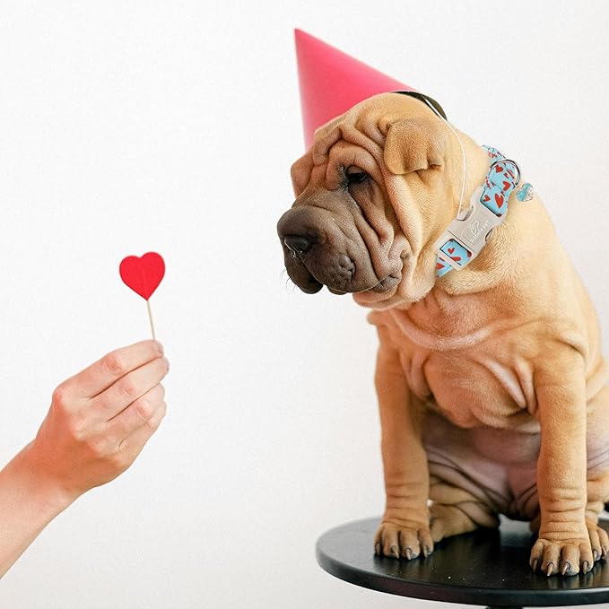 - Cute Valentines Day Themed Dog Collar: The collar features a high-quality abrasion-resistant cotton polyester fabric that is comfortable and durable. It is the perfect accessory for walks, playtime, or special occasions without causing any irritation to your dog's skin