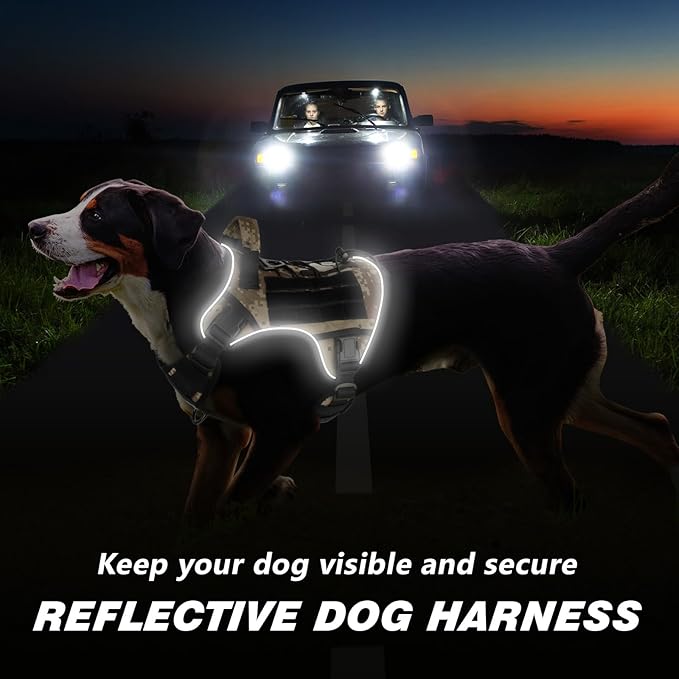 WINGOIN Tactical Dog Harness for Large Dogs, Heavy Duty No Pull Dog Harness with Handle, Adjustable Reflective Military K9 German Shepherd Big Size Dog Vest for Training, Walking, Hiking, Camo (L)