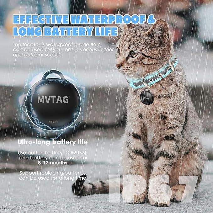 - 【No Subscription, Easy to Use】 Enjoy hassle-free setup with the cat tracker collar that integrates directly with your iPhone's "Find My" app—no need for additional subscriptions or apps. This convenient cat tracker is ready to use right out of the box, with no monthly fees, and the collar is removable for easy storage and maintenance when not in use.