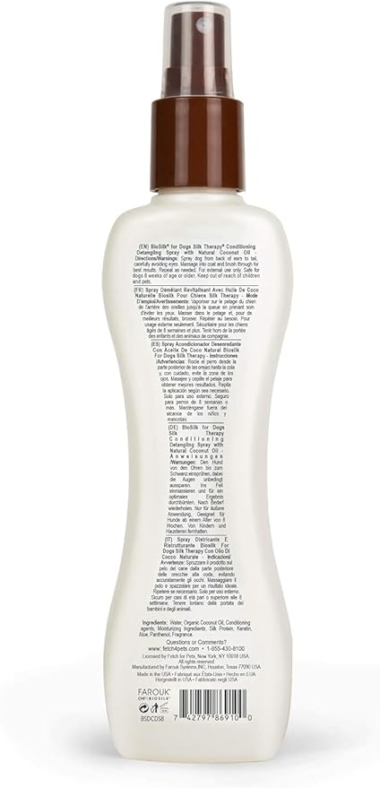- EASY TO USE — Made with the same classic ingredients as the original BioSilk line for humans, this dematting spray for dogs sprays right onto your dog's coat, working through knots and tangles easily and effectively
