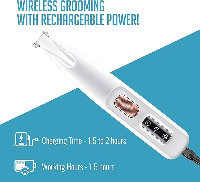 - Cordless Convenience with Rechargeable Power: With this Paw Hair Trimmers Clippers, you can enjoy hassle-free grooming with a built-in rechargeable battery, eliminating the need for constant replacements. Fully charges in just 1.5–2 hours, offering a reliable runtime of up to 1.5 hours per session. Groom anywhere, anytime, with complete freedom from tangled cords. This Paw Pad Trimmer is compact and lightweight, perfect for travel and quick touch-ups on the go.