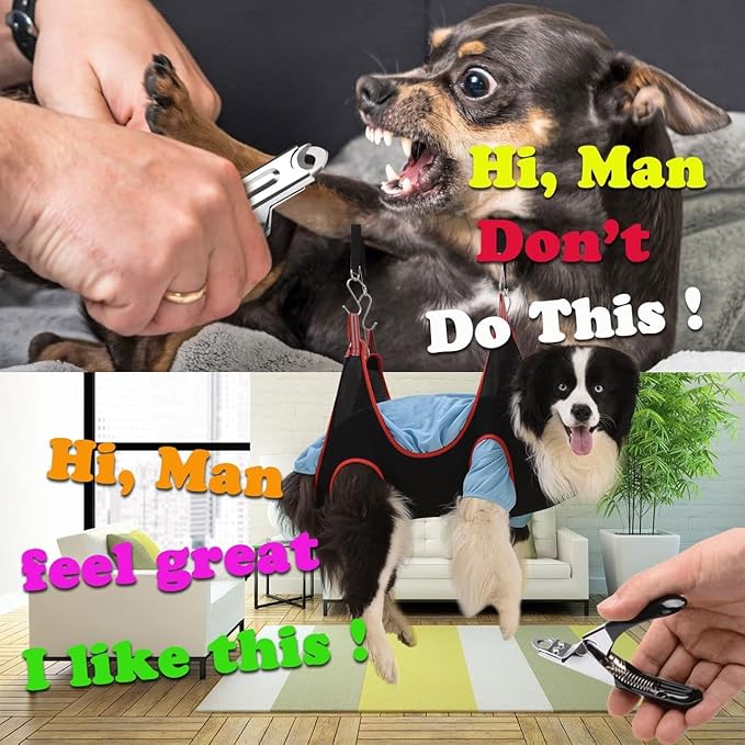- 【Higher Safety】 The upgraded version of pet grooming hammock, we provide stronger reinforced grommets and colorful carabiner.It can ensure the safety of pets when trimming and grooming pet nails