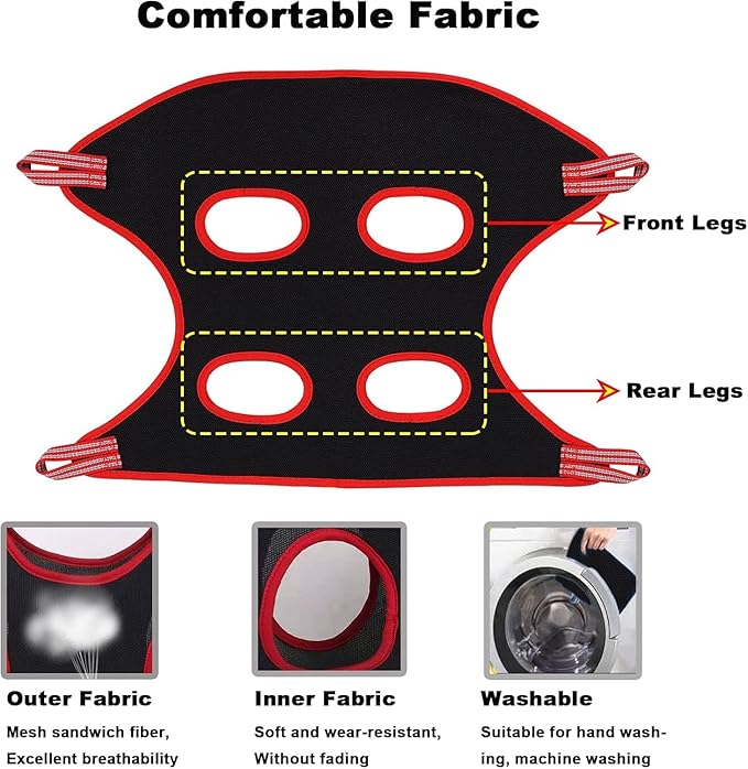 - 【Size Tip】Size L is suitable for pets with about 10.2 inches between the front and rear legs,In order to make your pet fit perfectly with the grooming hammock, please measure the distance between your pet's legs before purchasing, and the maximum load weight is 55 lbs