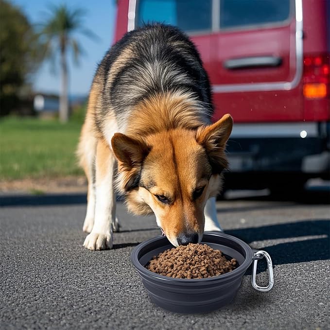 - PORTABLE & CONVENIENT: The collapsible pet feeding and watering bowls are lightweight and easy to carry,can be folded down to a compact size,making them easy to store in bags or cars.Come with 2 carabiners, the compact travel bowls can be attached to belt loop,backpack,dog leash,dog collars,dog carrier,bags,luggage and more.Suitable for outdoor/indoor acitivies,outings and trips.