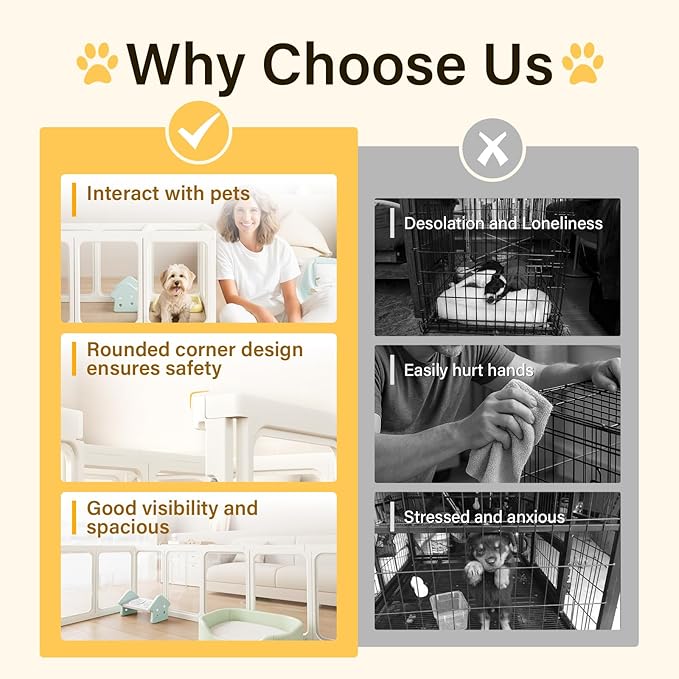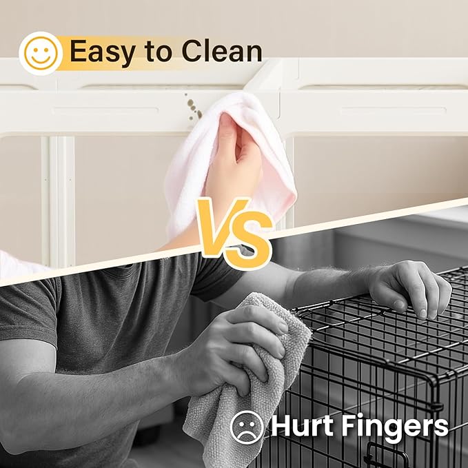 - Modern & Transparent Design: Crafted with acrylic dog playpen panels and reinforced plastic frames, this clear dog play pen offers unmatched transparency to monitor pets while ensuring long-lasting durability. The scratch-resistant surface withstands claws and daily wear, perfect for energetic puppies or curious cats.