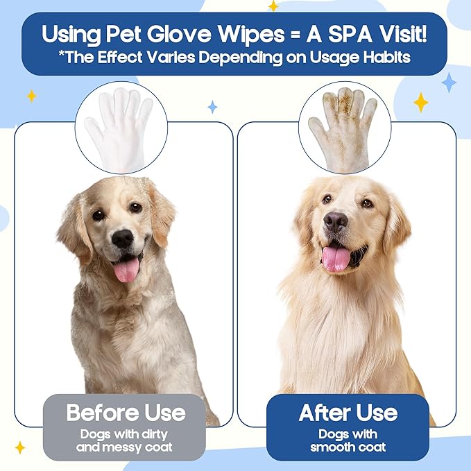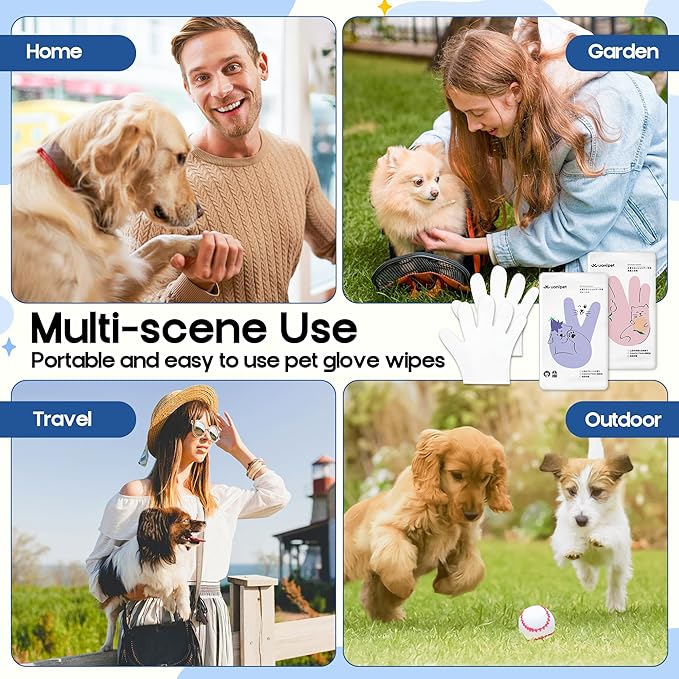 - Multi Use for Many Situations: These deodorizing pet gloves for dog provide the perfect waterless cleaning solution for busy pet owners, making daily grooming quick and stress-free. Ideal for small pets afraid of baths, post-surgery care, travel, or quick cleanups between washes. Whether you're at home or on the go, these convenient wipes ensure your furry friend stays fresh and clean without the hassle of traditional bathing.