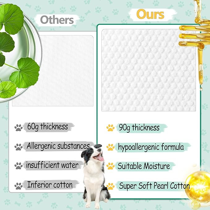 - Friendly and Helpful - Especially suitable for pets that have just had surgery, dogs that are stressed about bathing, old pets or infirm pups and other times when bathing is inconvenient, The pet glove wipe very friendly and helpful for pet wrinkle care, Daily Care and Travelling.