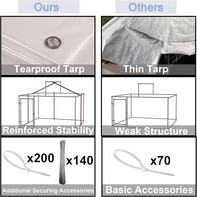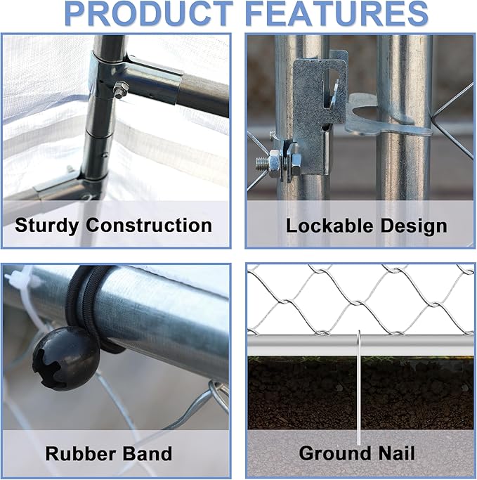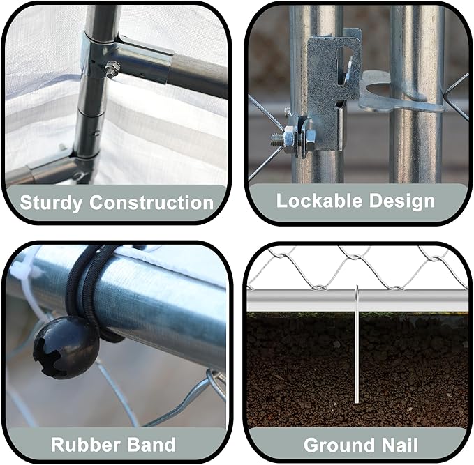 - 【Heavy Duty & Weather-Resistant Construction】This outdoor dog kennel features a galvanized metal frame that helps resist rust and corrosion, making it suitable for long-term outdoor use. The reinforced design, combined with secure cable ties and ground nails, enhances the stability of the dog crate—even for active large dogs. A solid option for outdoor protection in various weather conditions